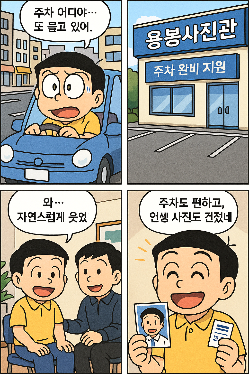 주차 걱정 없이, 편안하게 인생 사진을 찍고 싶다면, 용봉사진관이 정답입니다!