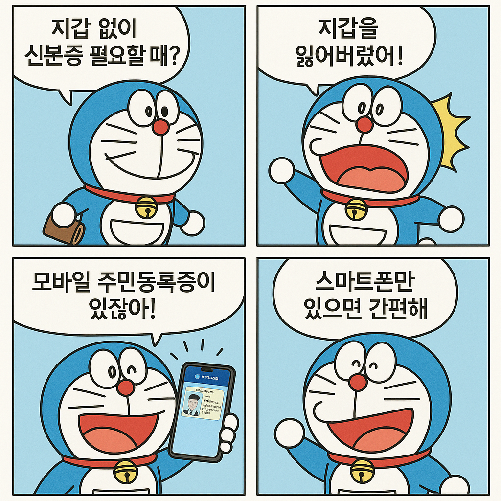 이제 지갑 속에 꽁꽁 숨겨두었던 주민등록증 대신, 늘 손에 쥐고 있는 스마트폰으로 더 빠르고 편리한 생활을 누려보세요!