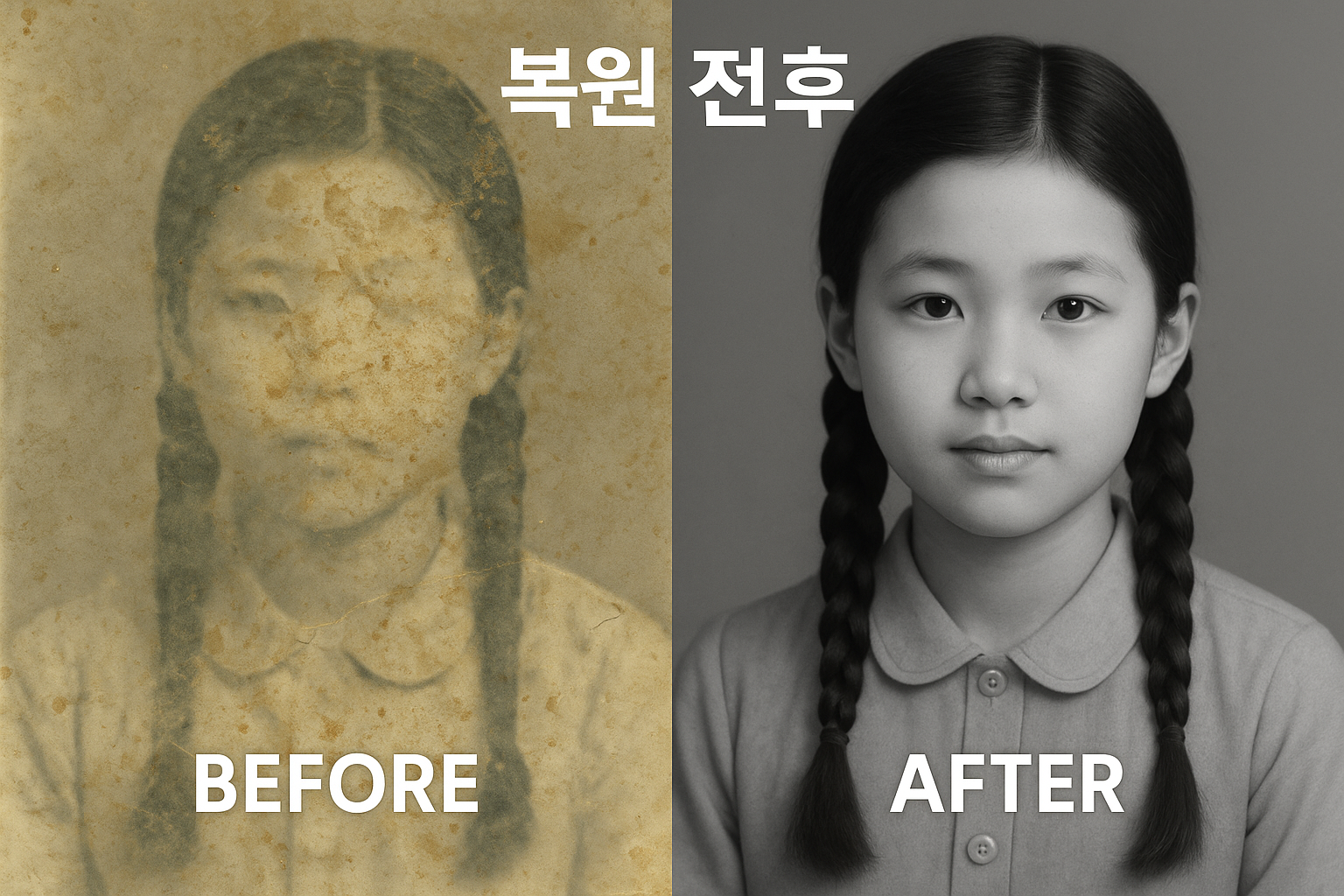 - 새로운 가치 창조: 복원된 사진은 단순한 기록을 넘어, 인테리어 액자, 영정사진, 특별한 선물 등으로 재탄생하며 새로운 가치를 창조합니다.