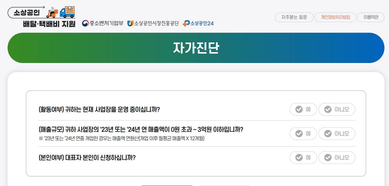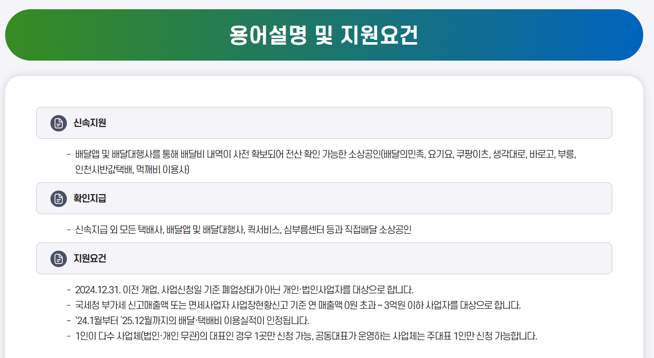 - 2024년 1월 1일부터 2025년 12월 31일까지 배달 또는 택배 실적이 있을 것