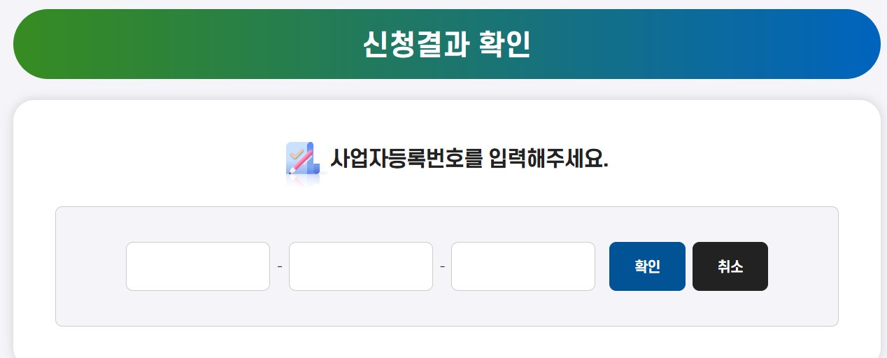 - 신청 정보 입력: 신청자 이름, 은행 계좌정보, 사업장 주소 등 입력