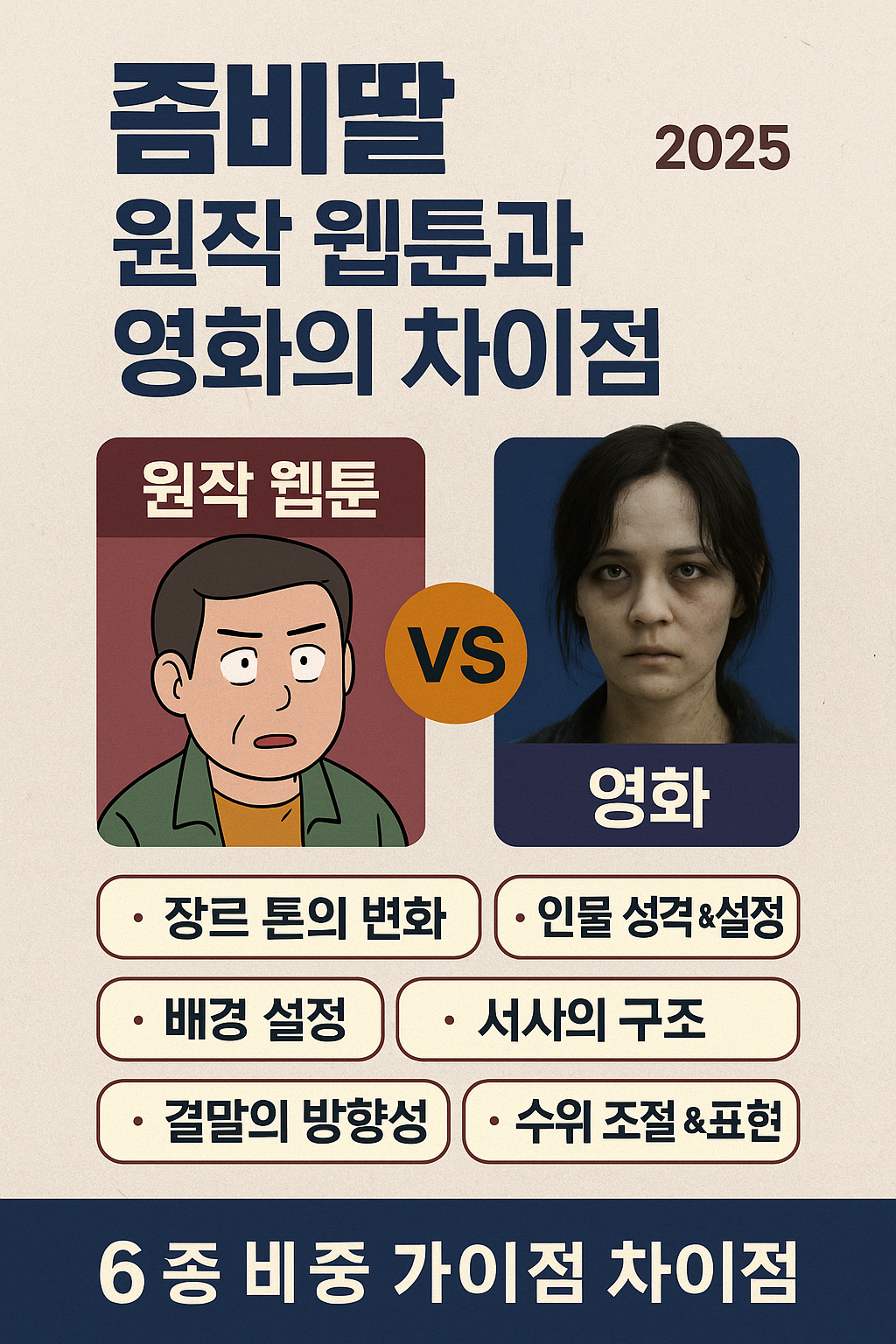 오늘은 영화와 웹툰 ‘좀비딸’의 주요 차이점을 주제별로 비교 분석해보겠습니다. 원작 팬이라면 흥미롭게, 영화 관객이라면 이해를 더할 수 있는 정보가 될 것입니다.