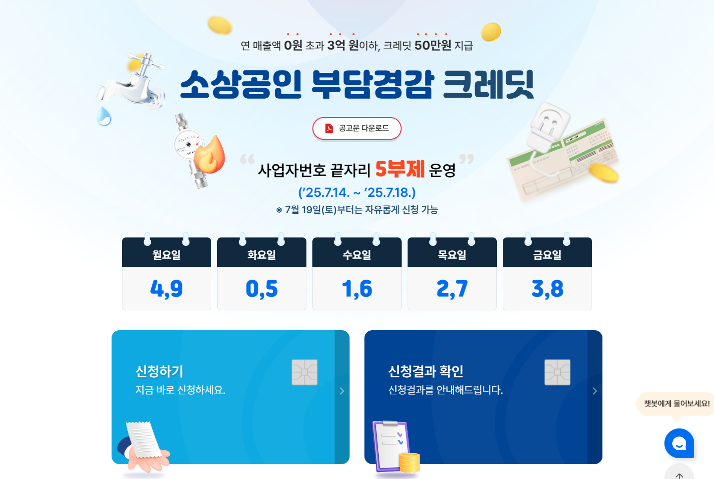 - → 크레딧 5만 원 자동 차감 → 소상공인 부담 3만 원