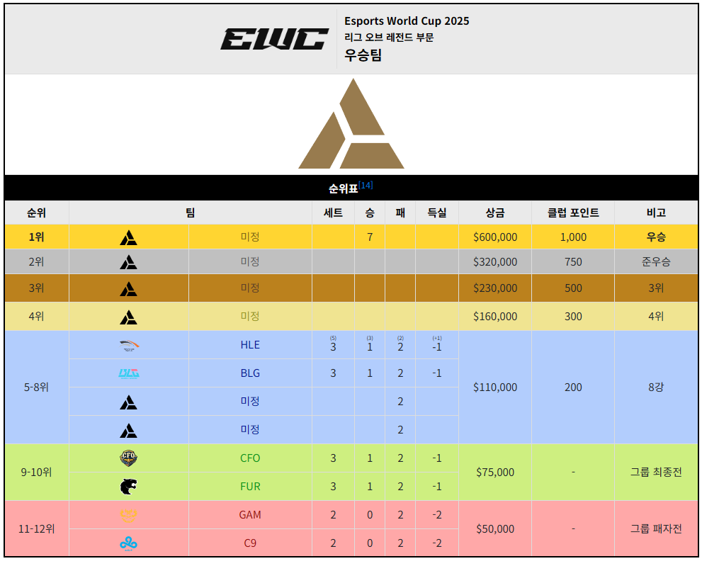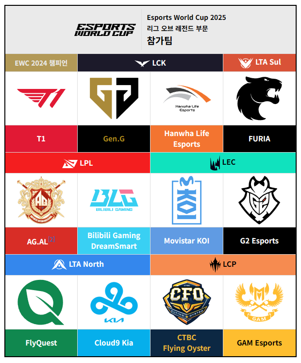 Esports World Cup 2025 LoL 부문은 총 12개 팀이 참가하여 치열한 토너먼트를 펼칩니다. 이번 대회는 단 5일 동안 압축적으로 진행되어 속도감 있는 전개가 특징입니다.