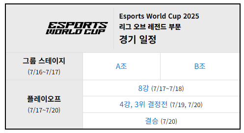 Esports World Cup 2025 리그 오브 레전드는 전 세계 최고 수준의 팀들이 단기간에 격돌하는 대회로, 단 5일간의 일정이기에 중계 한 경기도 놓치면 아쉬운 수준입니다.